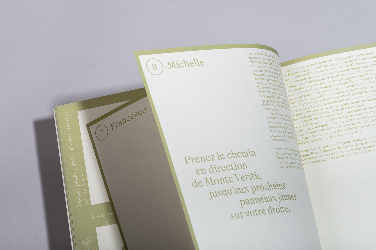 In collaboration with Nadine Curanz, I designed this immersive guide for artists Dorothé Thébert and Filippo Fillinger, for the project they realized during their residency at Monte Verità.