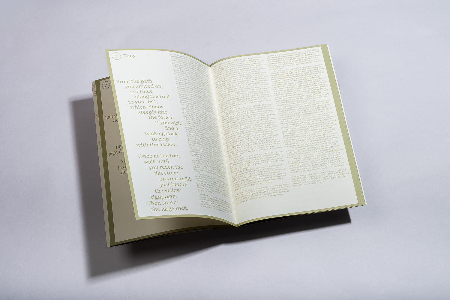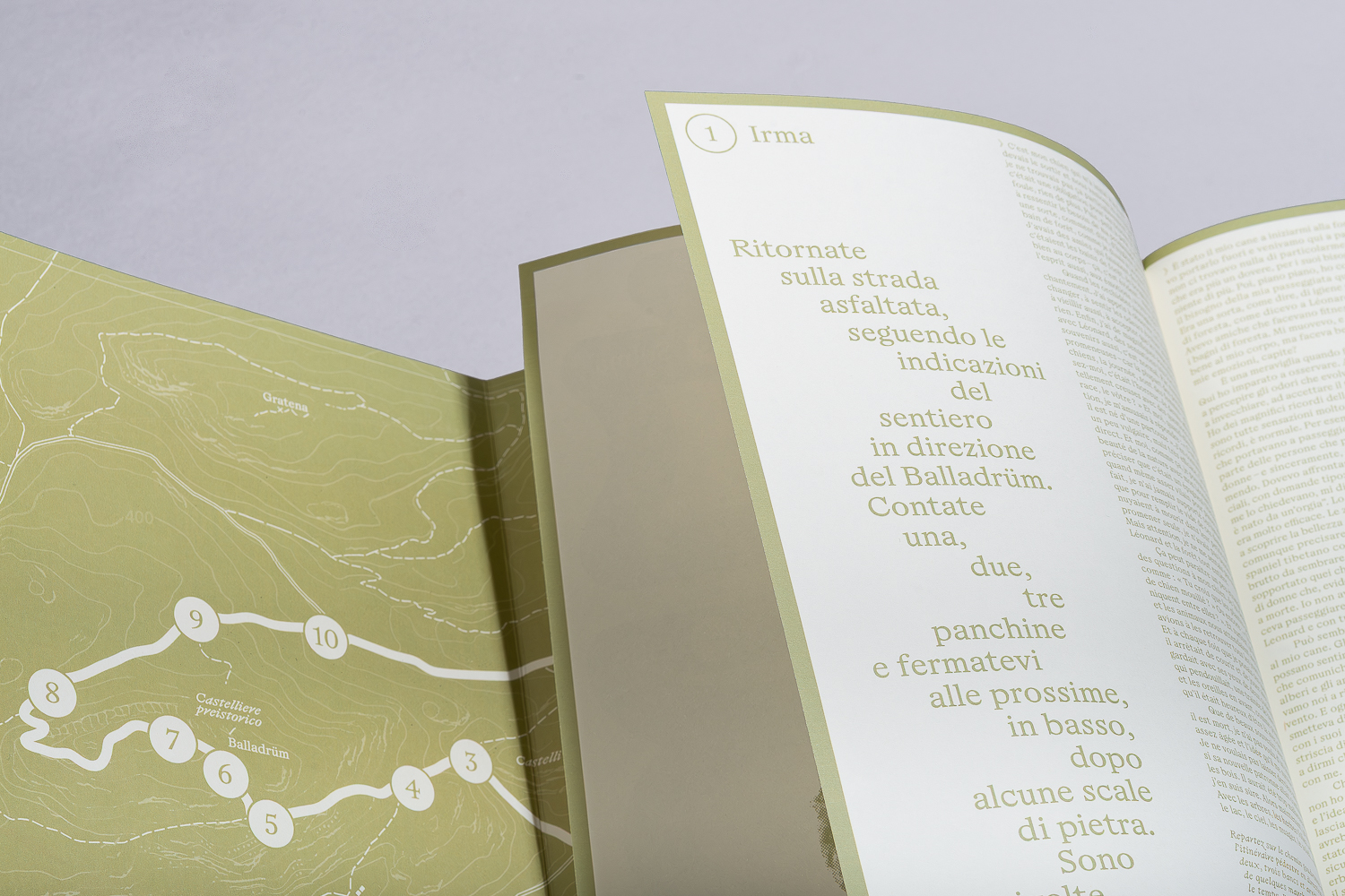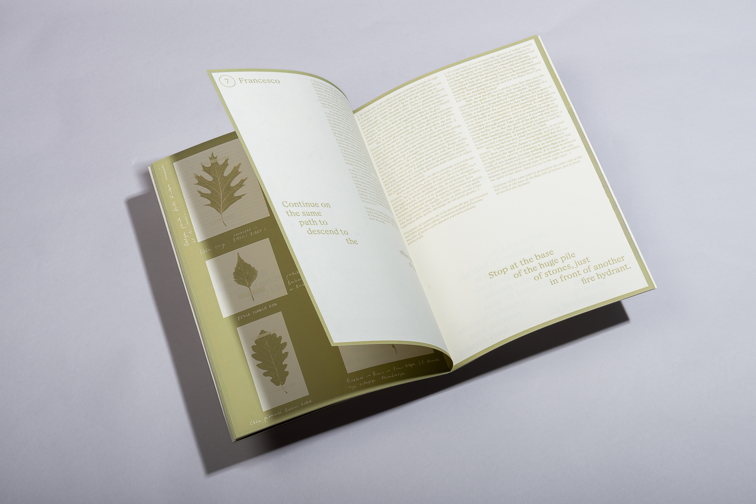 The outcome of their residency took the form of a literary walk. A path with 12 moments, where various characters read aloud texts written by the artists. The publication, conceived as both a guide and a companion to the experience, invites readers to engage with the journey in a truly immersive way.
